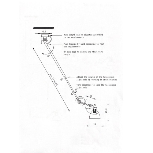 Size: Base: 9.5, Rod: max 92, Shade: 14 x 17.5mm